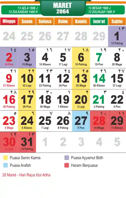 Template kalender puasa 2064, cocok sekali buat anda yang ingin cetak kalender yang bermanfat buat umat.