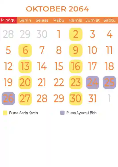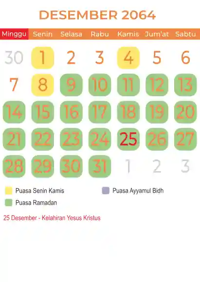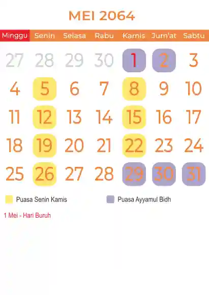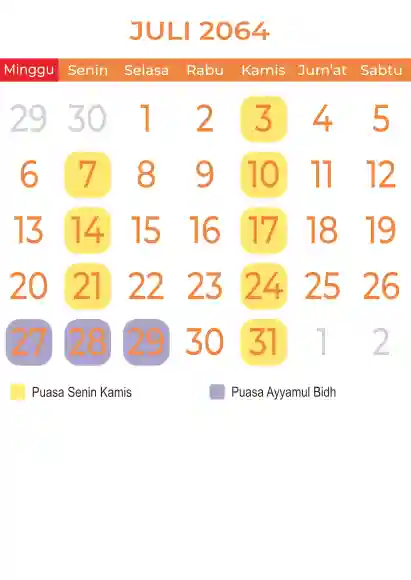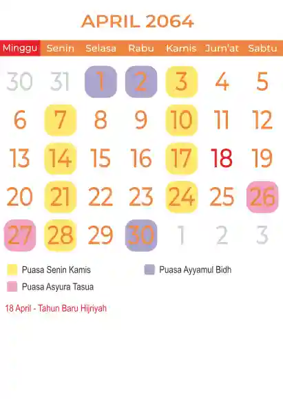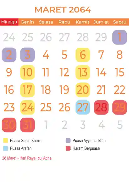 Template kalender puasa 2064, Versi yang lebih simple, cocok sekali buat anda yang ingin cetak kalender yang bermanfat buat umat.