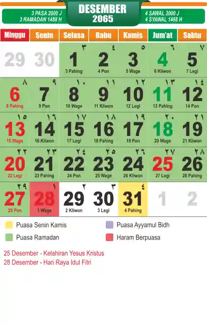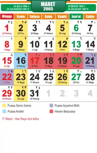Template kalender puasa 2065, cocok sekali buat anda yang ingin cetak kalender yang bermanfat buat umat.