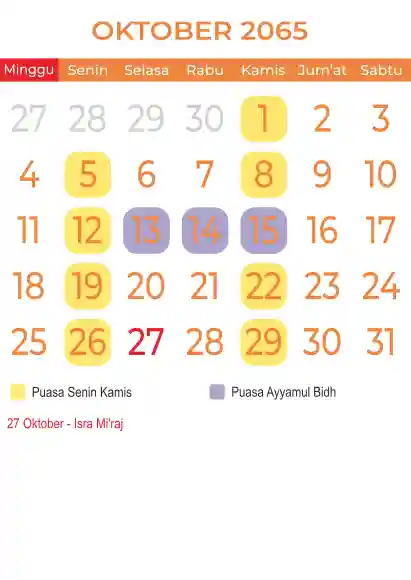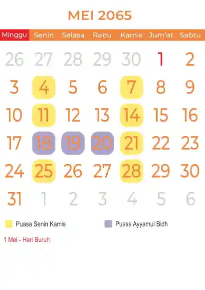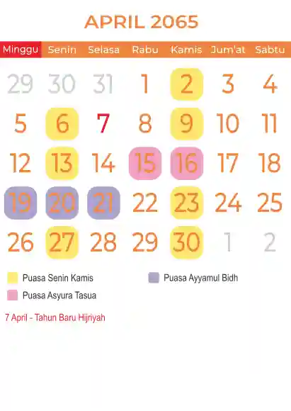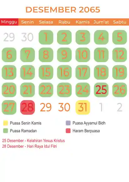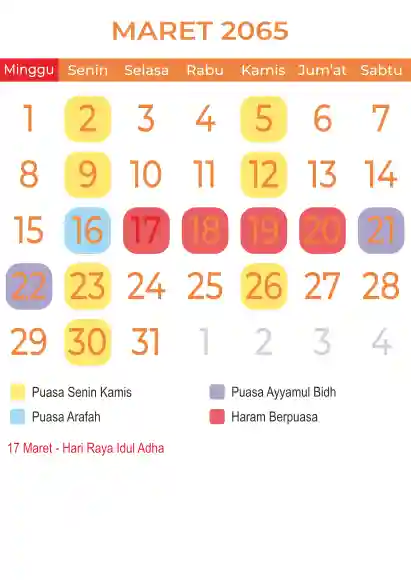 Template kalender puasa 2065, Versi yang lebih simple, cocok sekali buat anda yang ingin cetak kalender yang bermanfat buat umat.