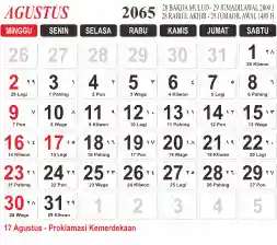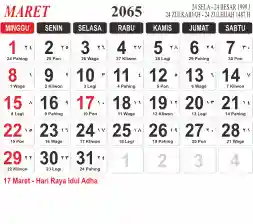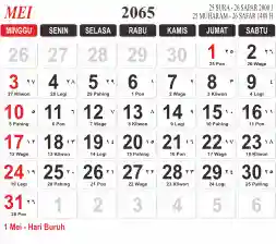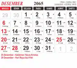 List hari libur tahun 2065 pada Tema 3 (Wide)