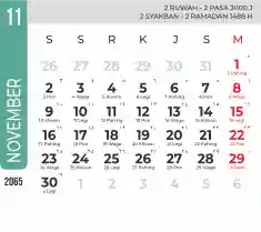 Template kalender 2065 dengan konsep minimalis modern dengan warna yang soft, cocok sekali buat kantor / bisnis seperti bank.