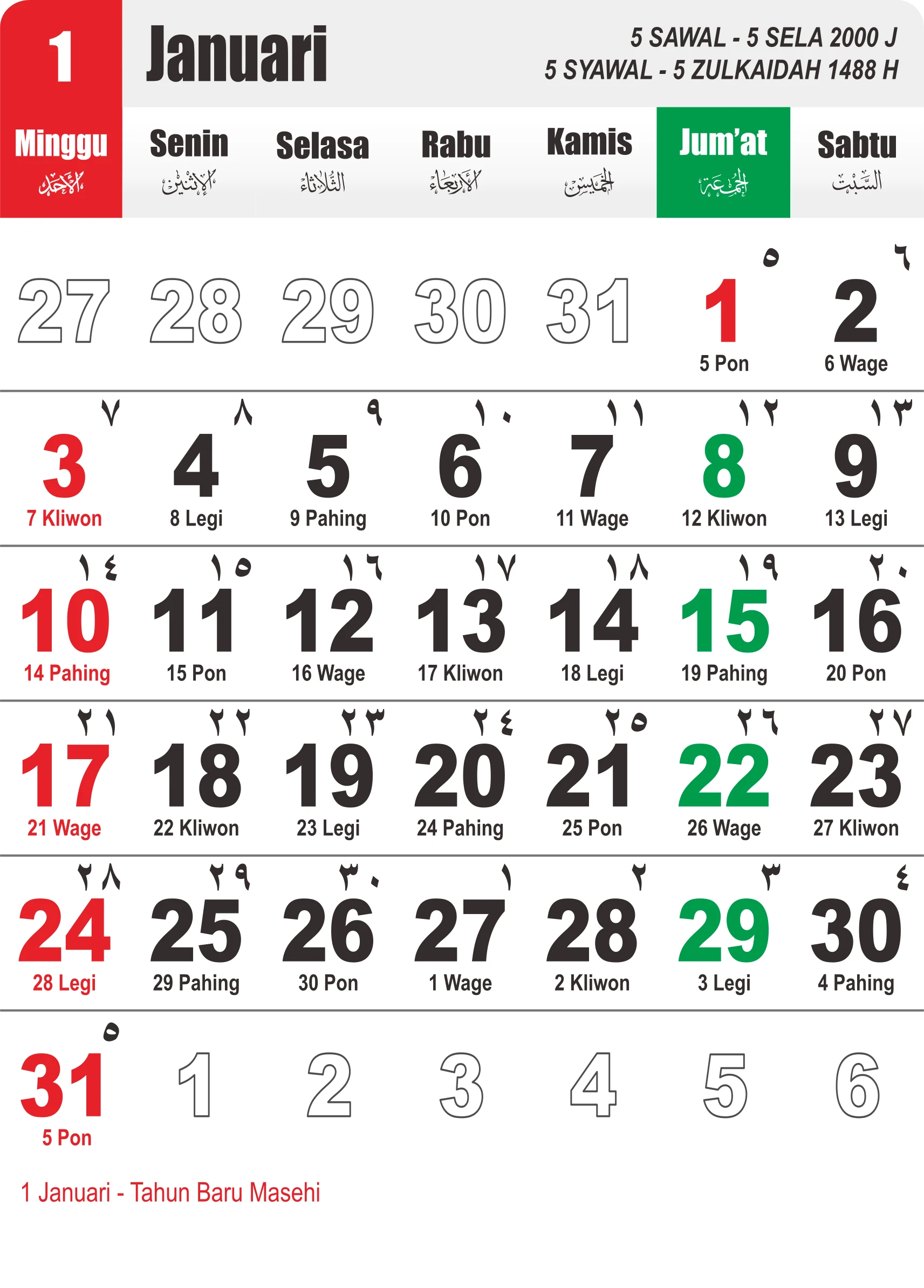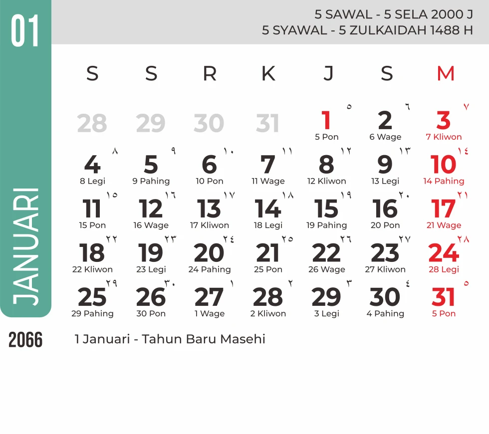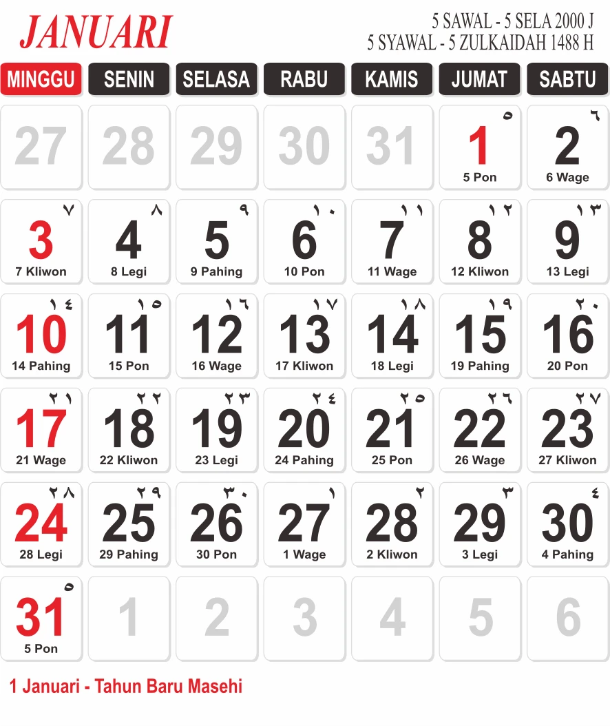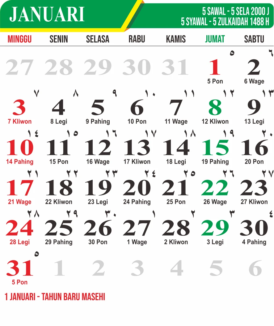 Template Kalender Jawa + Hijriah Vector