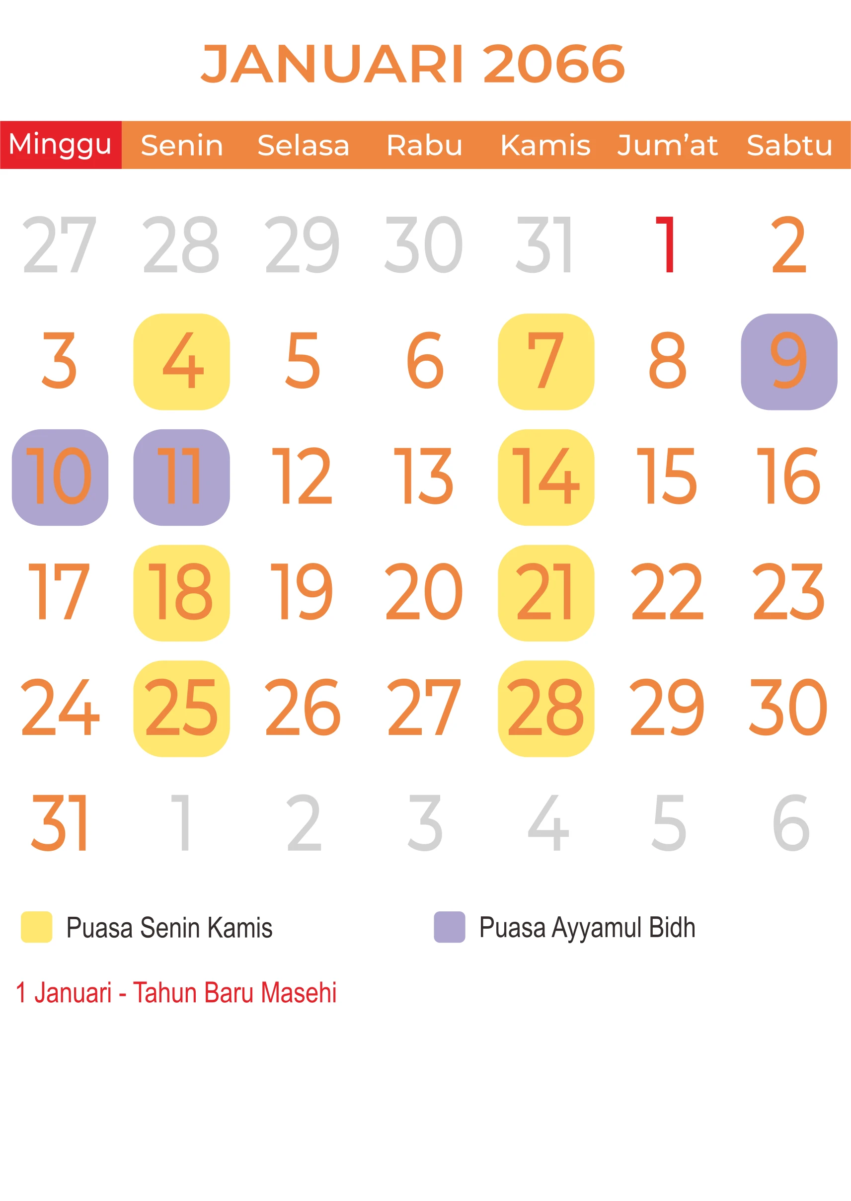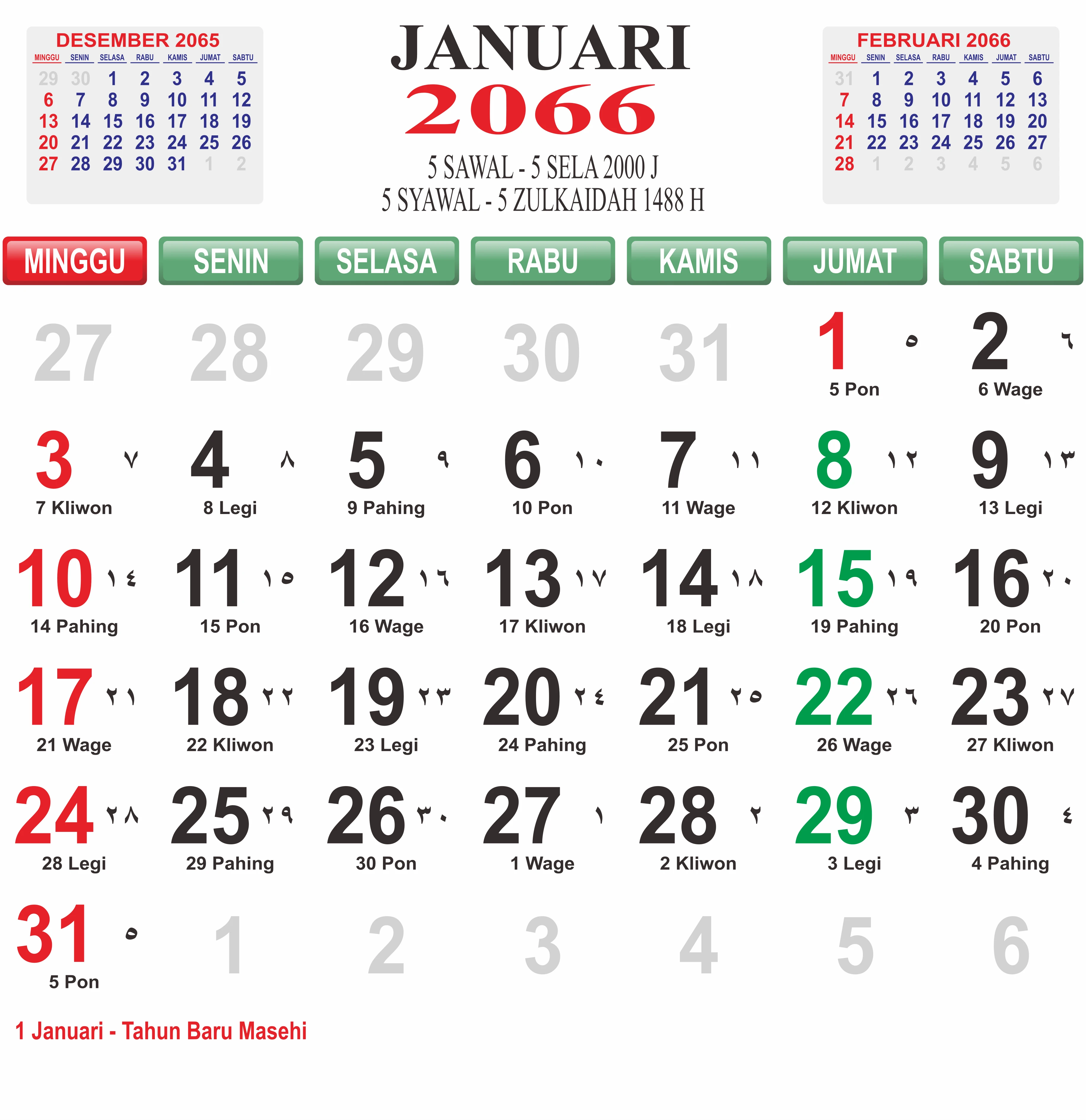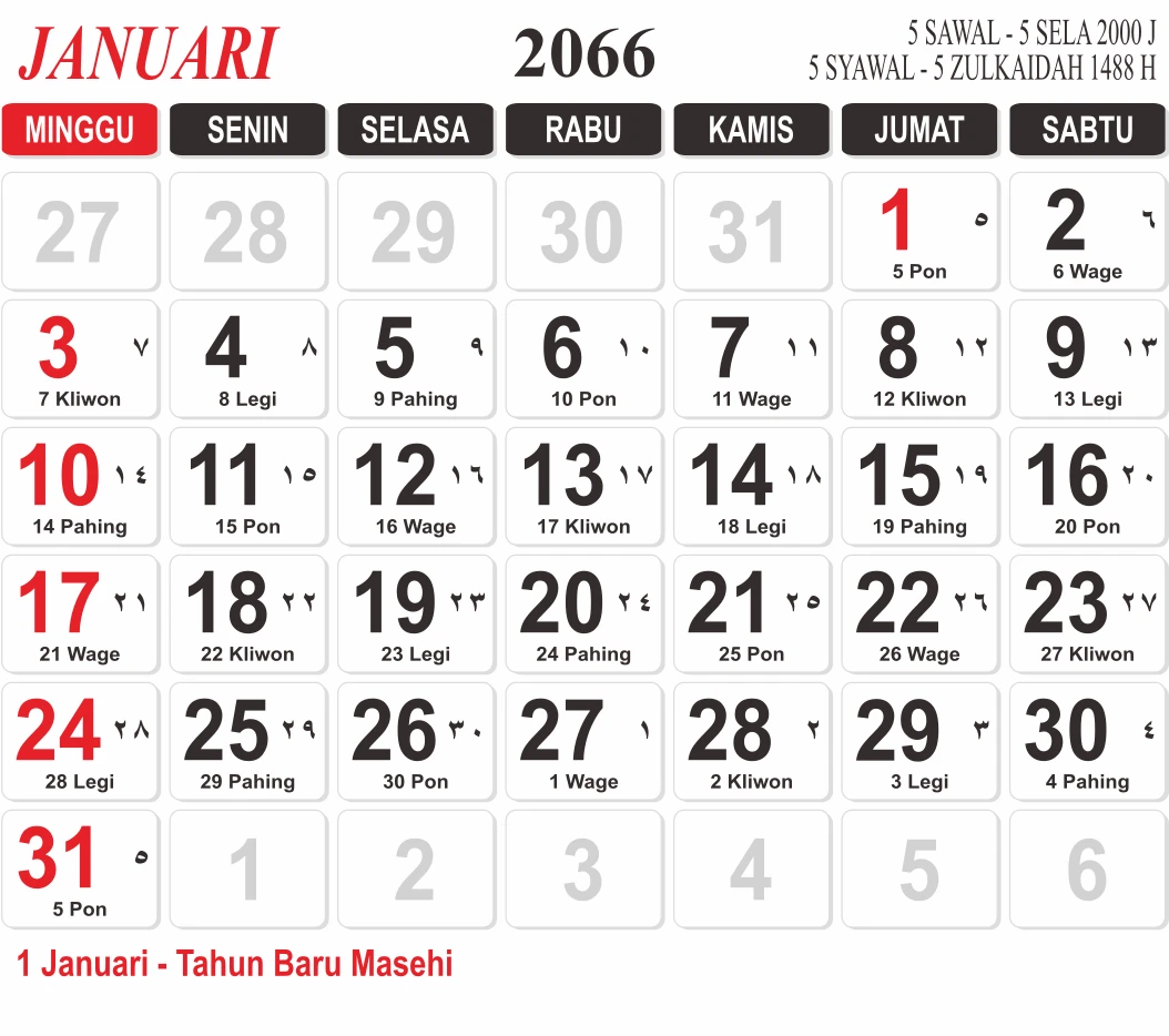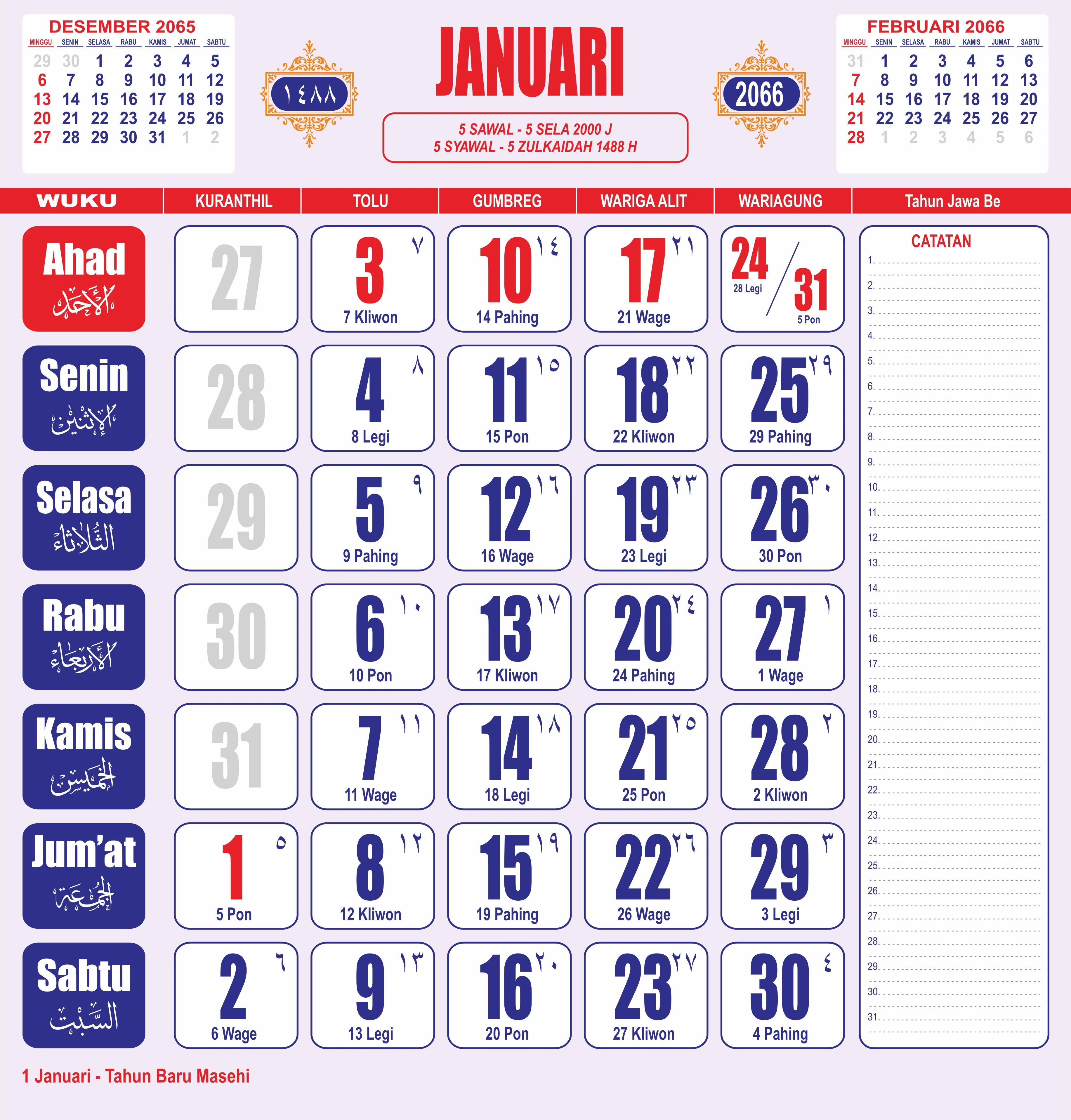 Template Kalender Jawa + Hijriah Vector