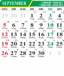 Tema kalender 2066 yang nuansa Islami yang cocok buat pondok pesantren atau lembaga keagamaan. Menggunakan font standar Times New Roman yang mudah dibaca.