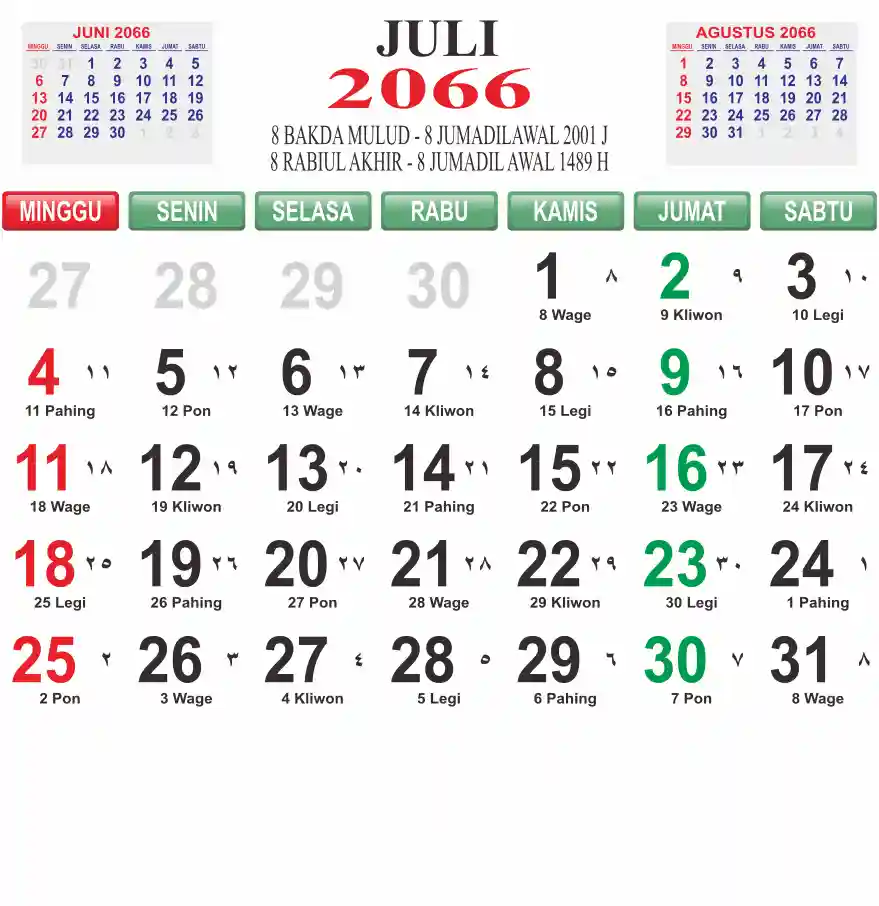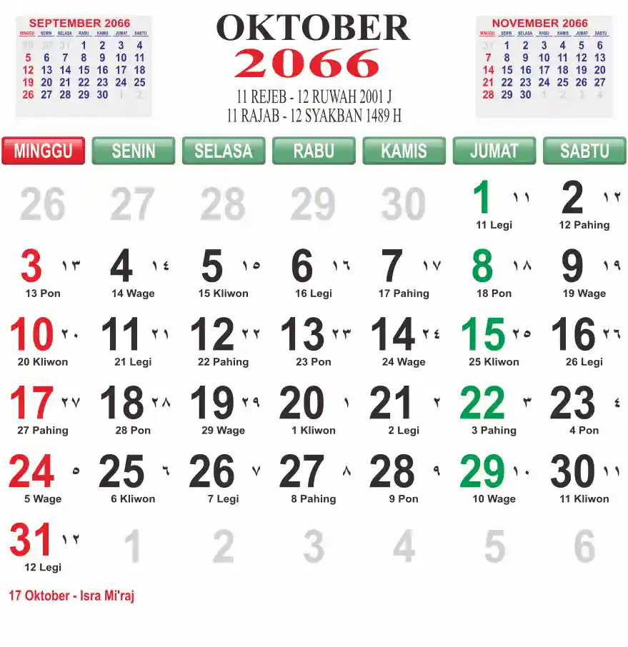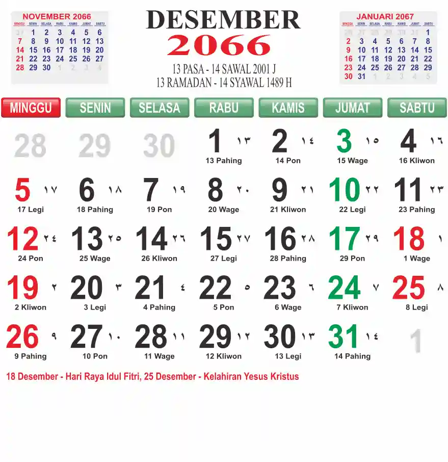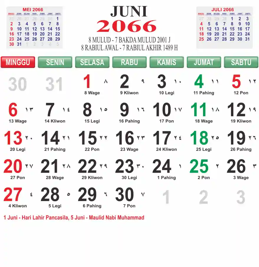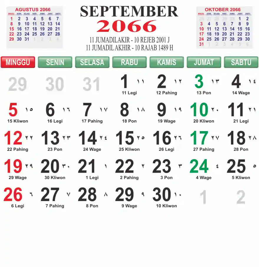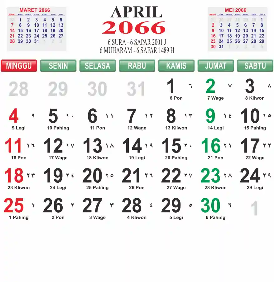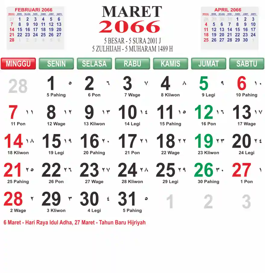 Template kalender 2066 lembaran besar jumbo yang mudah di baca dari jarak jauh. Kalender ini biasanya di cetak 1 lembar per bulan.