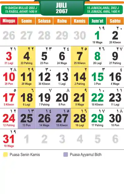 Template Kalender Jawa + Hijriah Vector