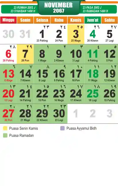 Template kalender puasa 2067, cocok sekali buat anda yang ingin cetak kalender yang bermanfat buat umat.