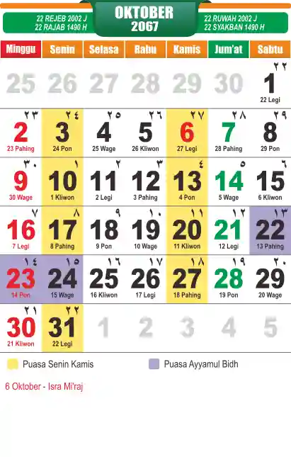 List hari libur tahun 2067 pada Tema 10