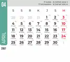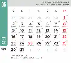 List hari libur tahun 2067 pada Tema 7