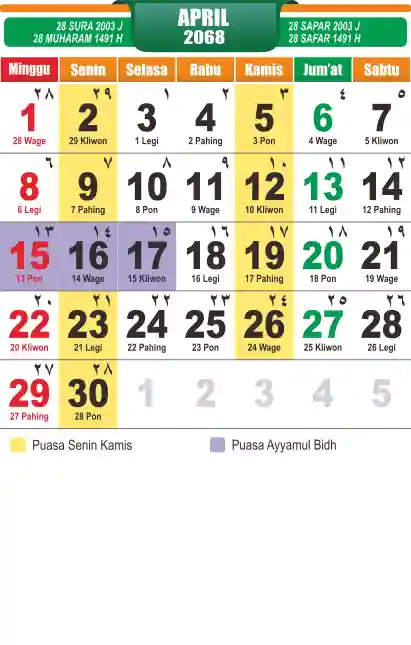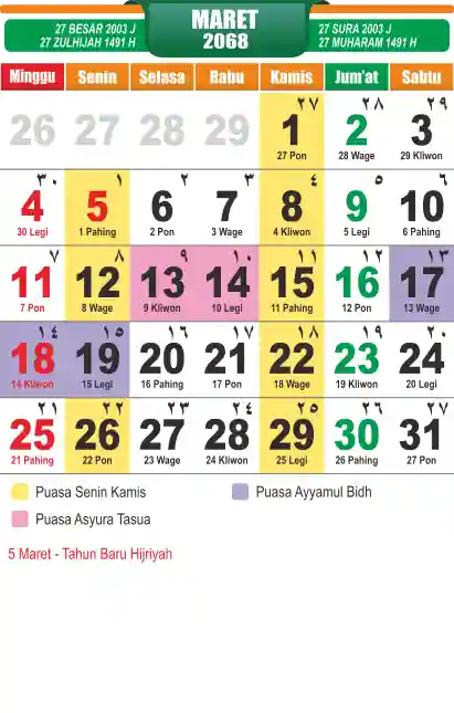 Template kalender puasa 2068, cocok sekali buat anda yang ingin cetak kalender yang bermanfat buat umat.