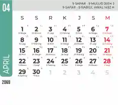 File template kalender 2069 yang editable (bisa anda edit) untuk CorelDRAW, format warna cmyk dan rgb untuk kebutuhan percetakan. Bisa custom hari libur (gunakan fitur tabel dibawah untuk edit).