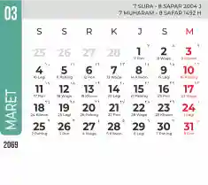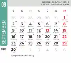 Template kalender 2069 dengan konsep minimalis modern dengan warna yang soft, cocok sekali buat kantor / bisnis seperti bank.
