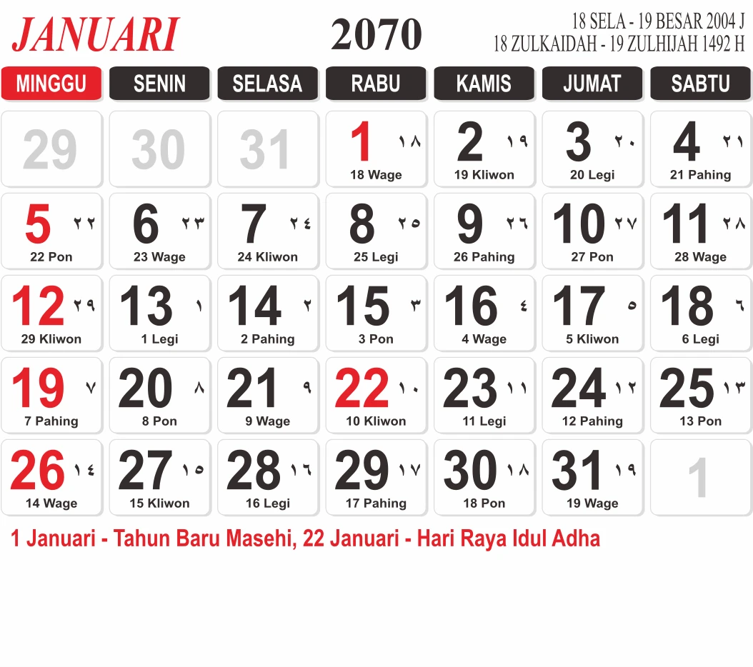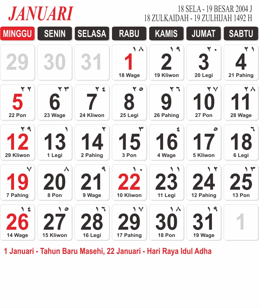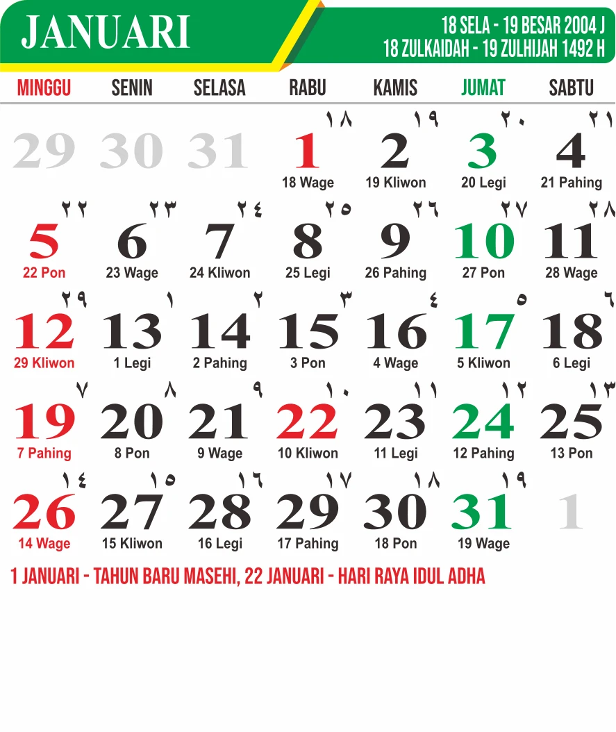 Template Kalender Jawa + Hijriah Vector