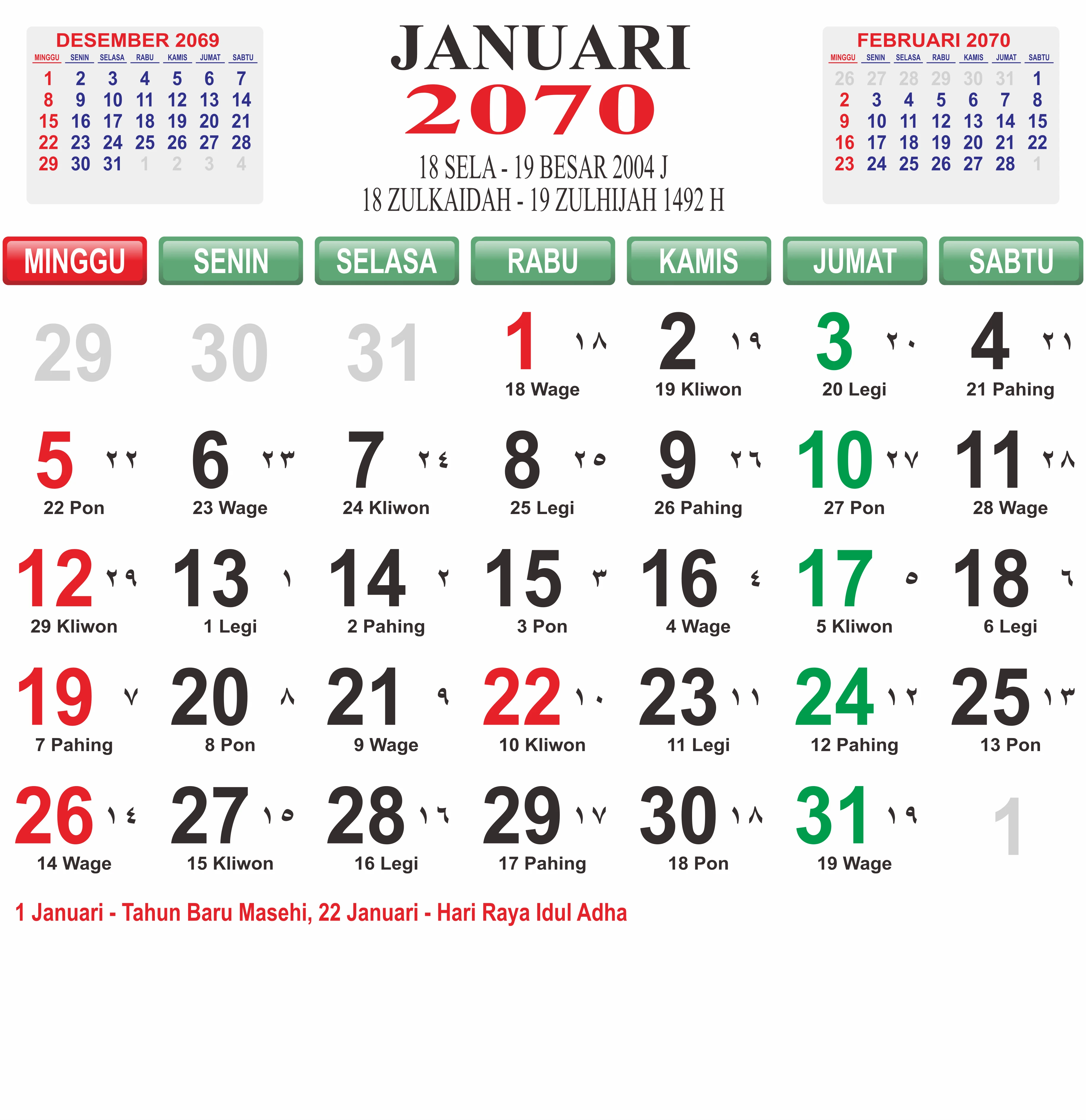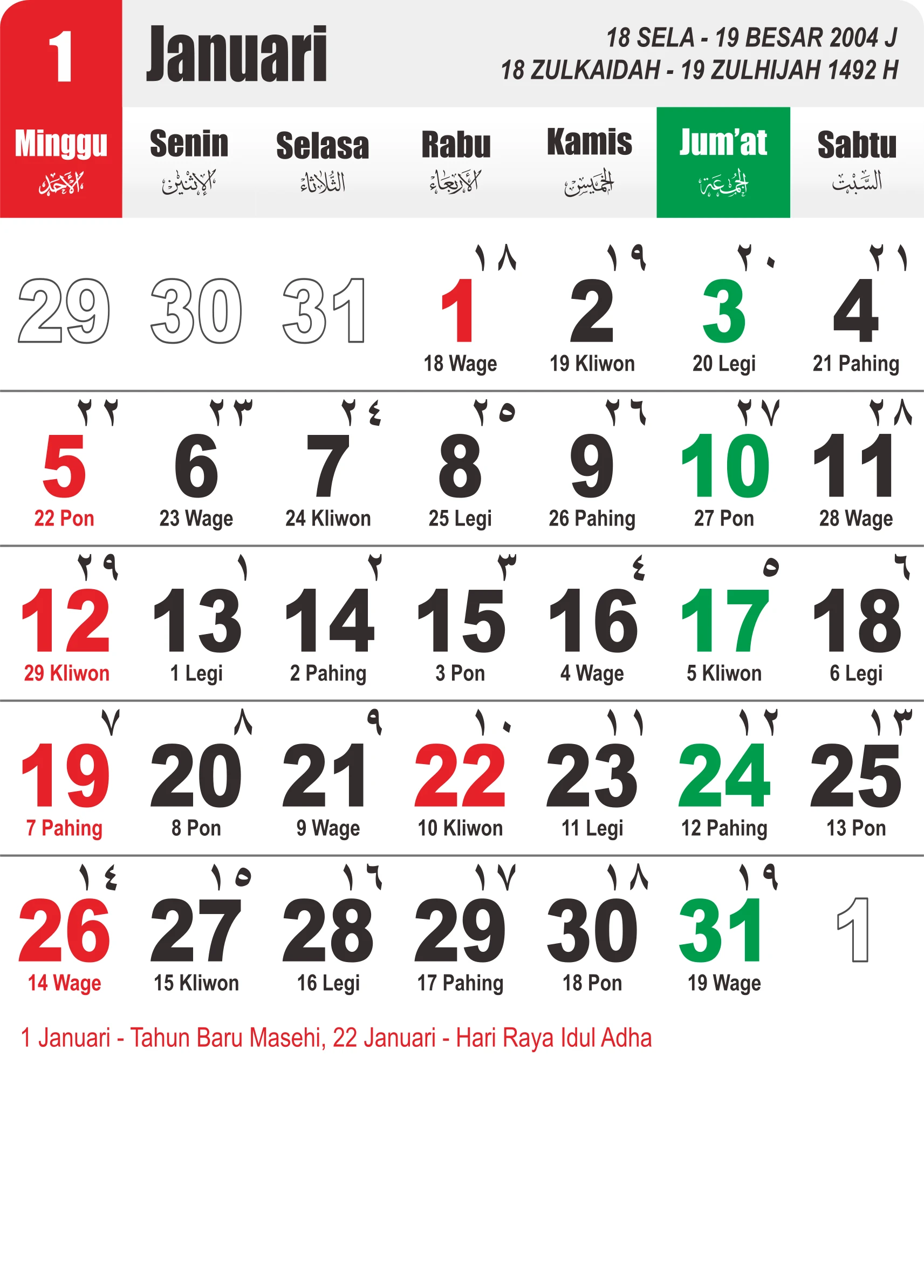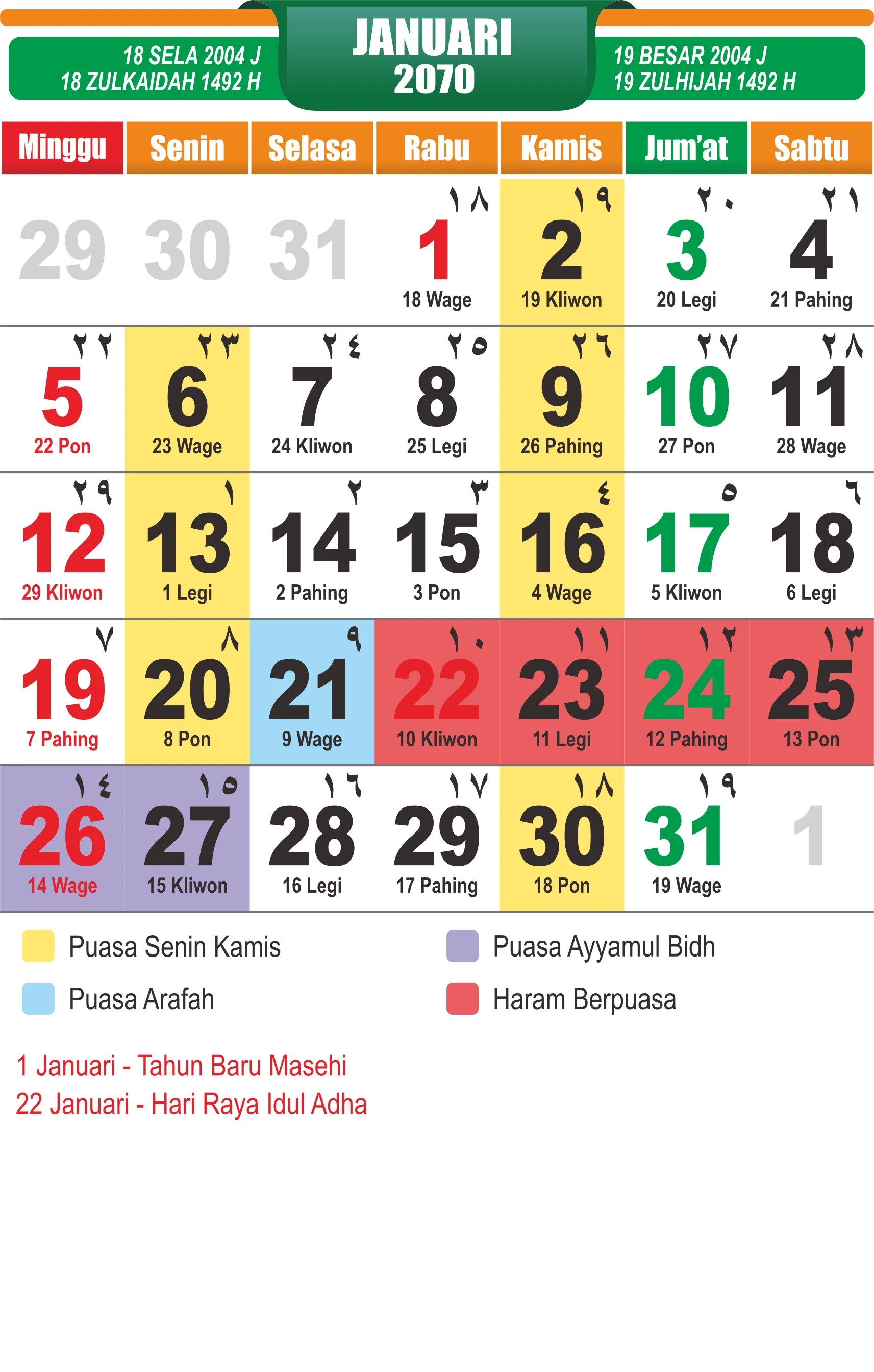 Template Kalender Jawa + Hijriah Vector