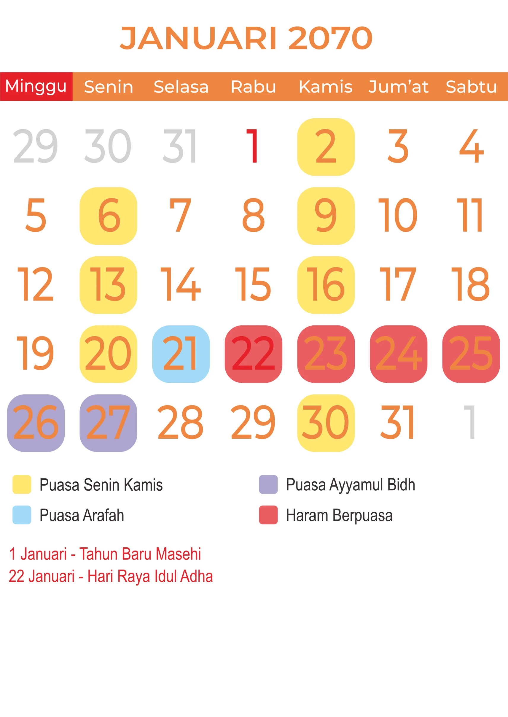 Template Kalender Puasa Vector
