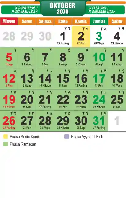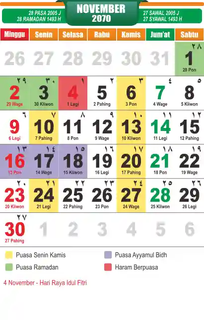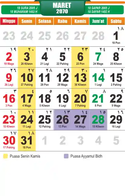 Template kalender puasa 2070, cocok sekali buat anda yang ingin cetak kalender yang bermanfat buat umat.