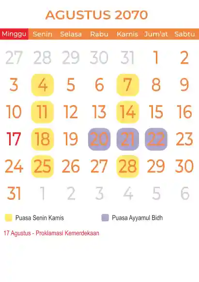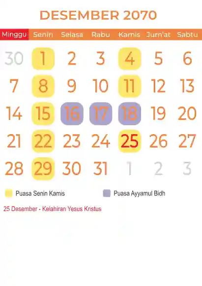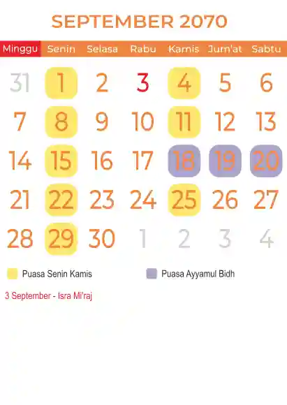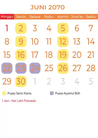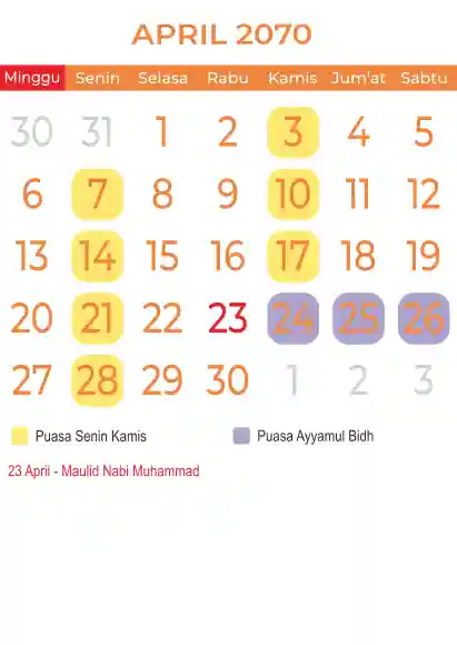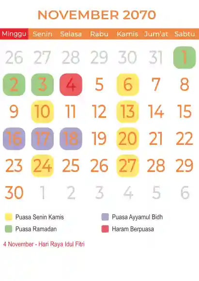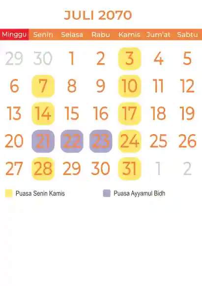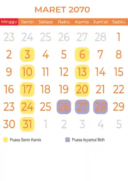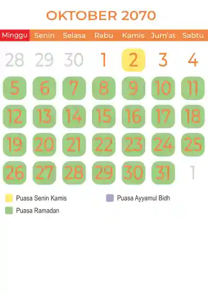 Template kalender puasa 2070, Versi yang lebih simple, cocok sekali buat anda yang ingin cetak kalender yang bermanfat buat umat.
