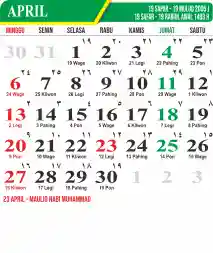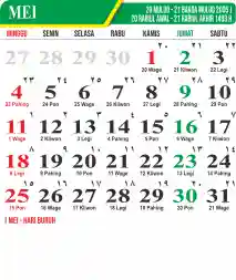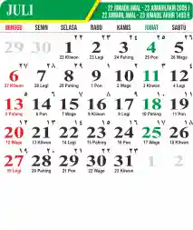 Template Kalender Jawa + Hijriah Vector