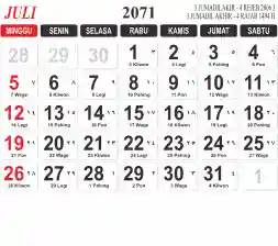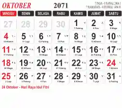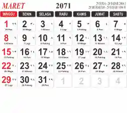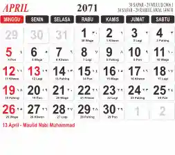 List hari libur tahun 2071 pada Tema 3 (Wide)