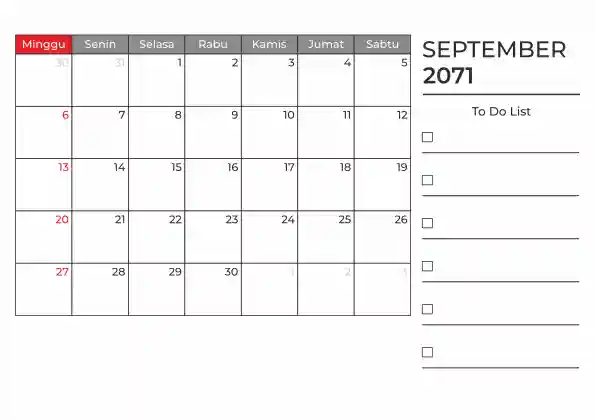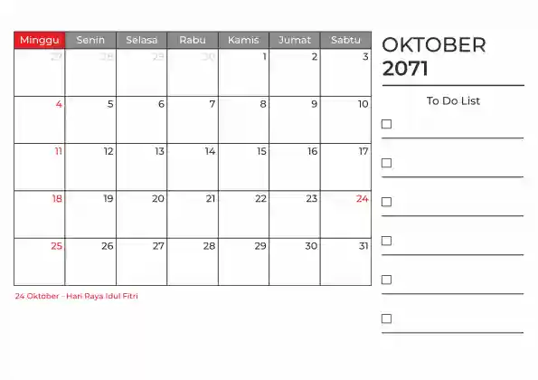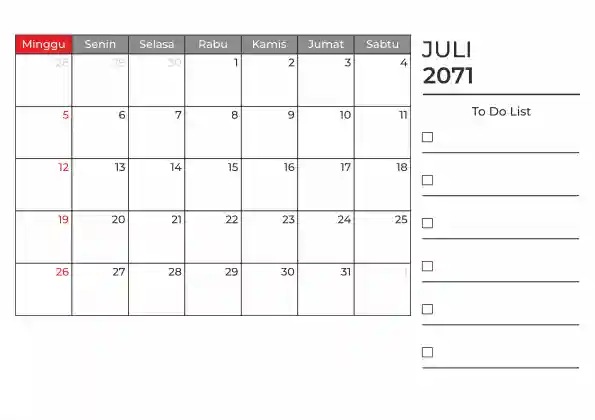 Template kalender 2071 duduk planner. Ada space kosong yang bisa di isi untuk menulis catatan dan ada space untuk menulis to do list.