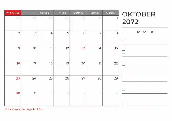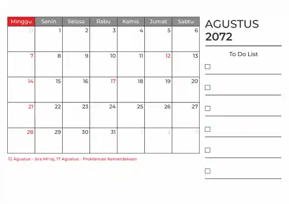 Template kalender 2072 duduk planner. Ada space kosong yang bisa di isi untuk menulis catatan dan ada space untuk menulis to do list.