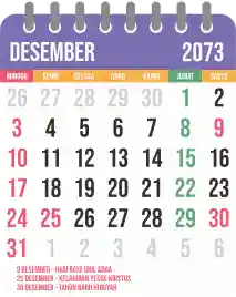 File template kalender 2073 yang editable (bisa anda edit) untuk CorelDRAW, format warna cmyk dan rgb untuk kebutuhan percetakan. Bisa custom hari libur (gunakan fitur tabel dibawah untuk edit).