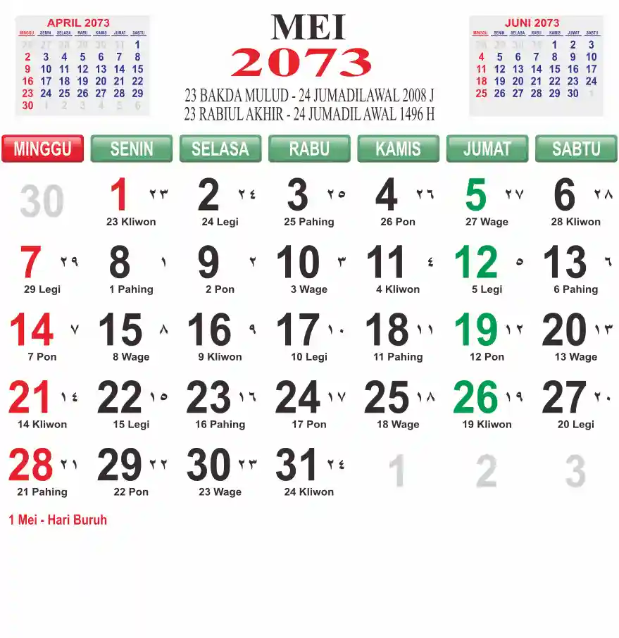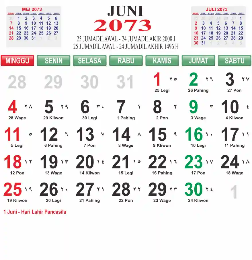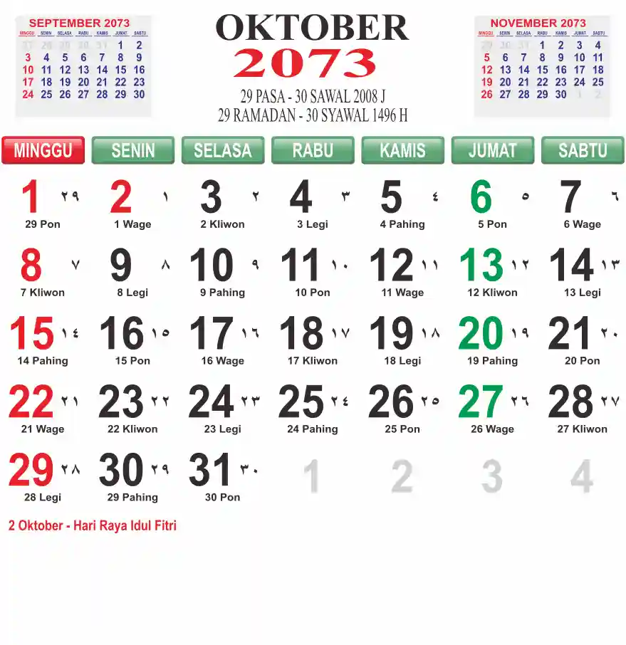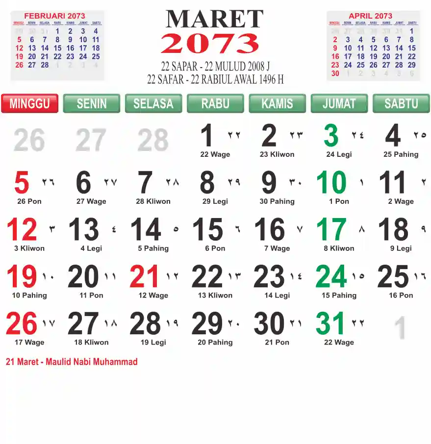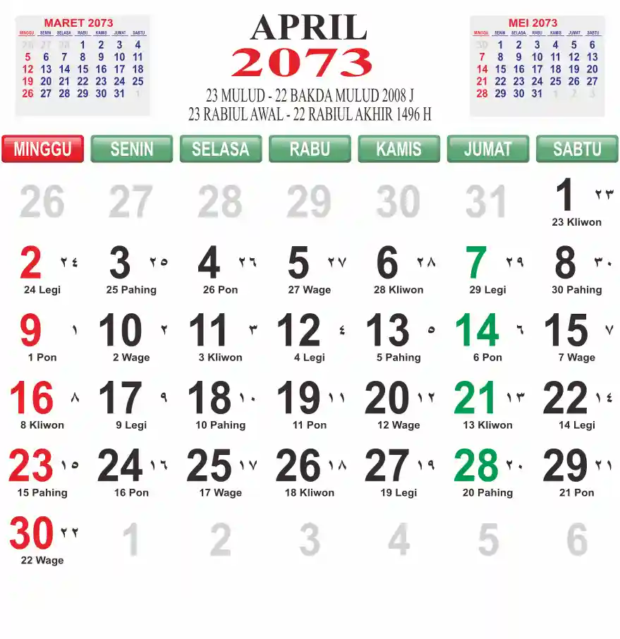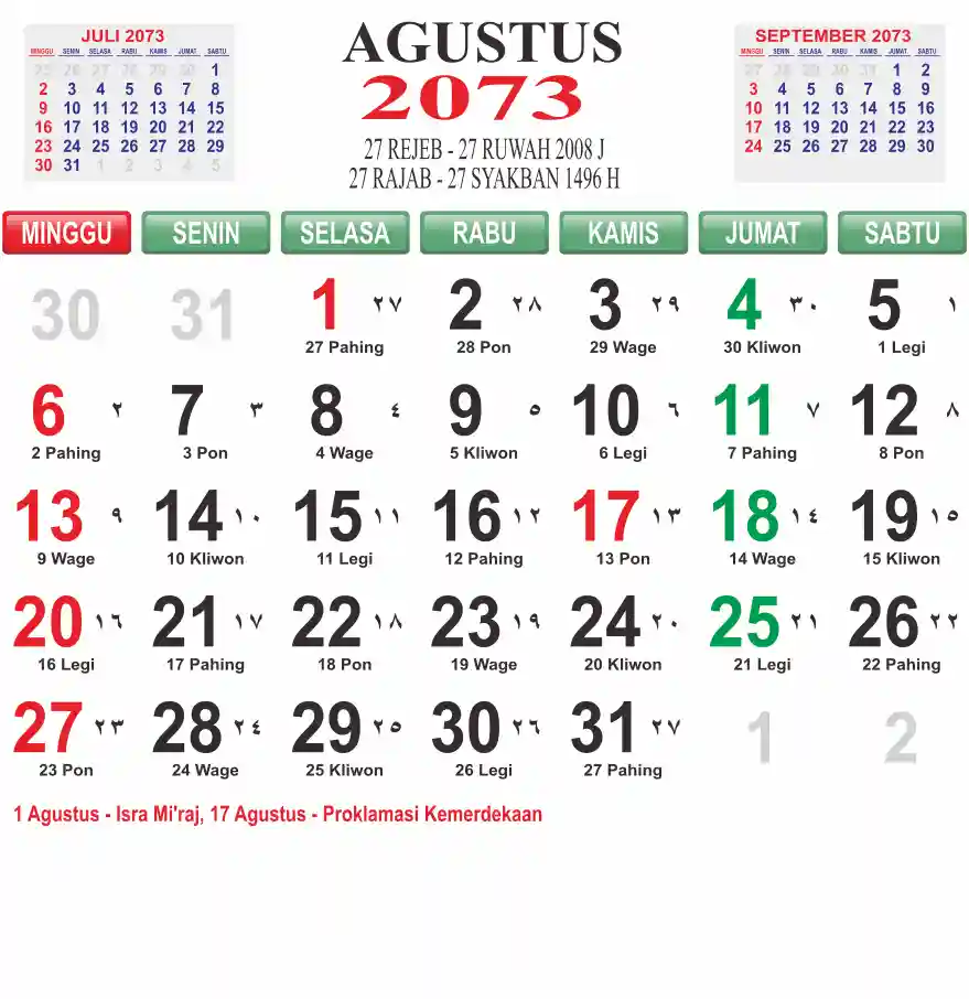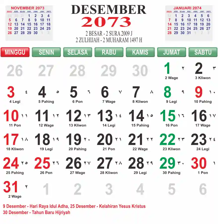 Template kalender 2073 lembaran besar jumbo yang mudah di baca dari jarak jauh. Kalender ini biasanya di cetak 1 lembar per bulan.
