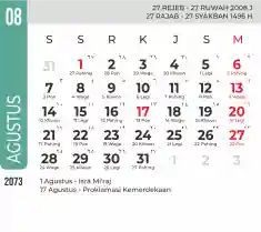 Template kalender 2073 dengan konsep minimalis modern dengan warna yang soft, cocok sekali buat kantor / bisnis seperti bank.