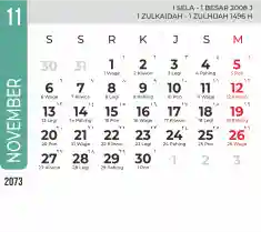 File template kalender 2073 yang editable (bisa anda edit) untuk CorelDRAW, format warna cmyk dan rgb untuk kebutuhan percetakan. Bisa custom hari libur (gunakan fitur tabel dibawah untuk edit).