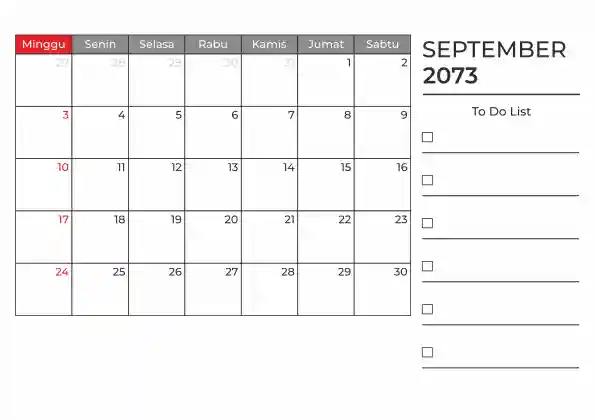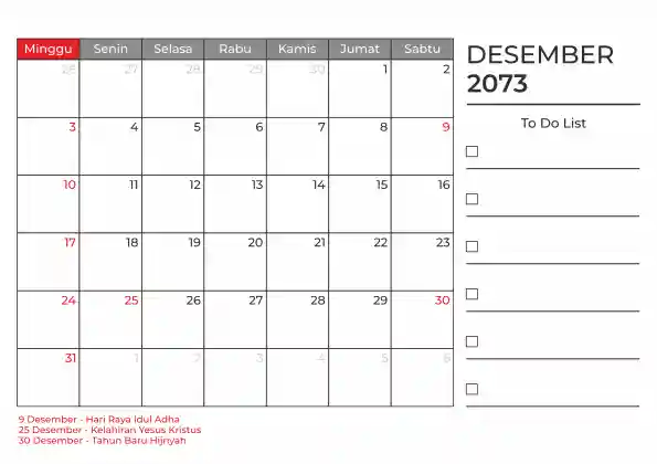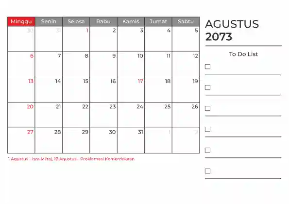 Template kalender 2073 duduk planner. Ada space kosong yang bisa di isi untuk menulis catatan dan ada space untuk menulis to do list.