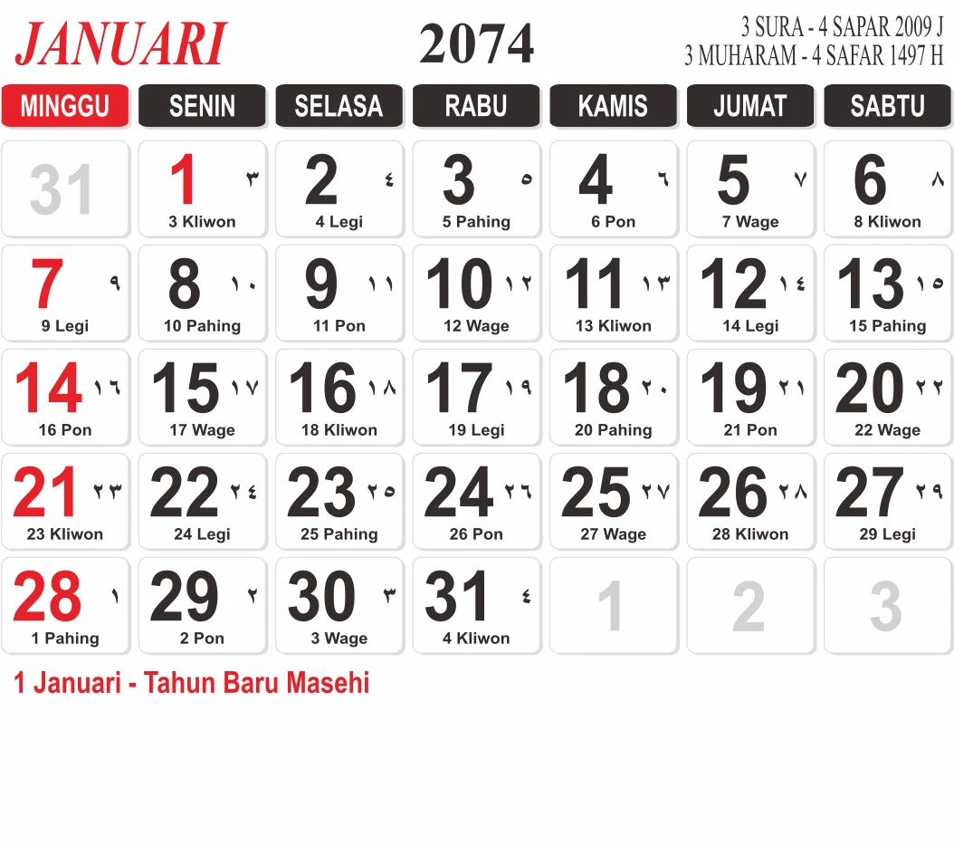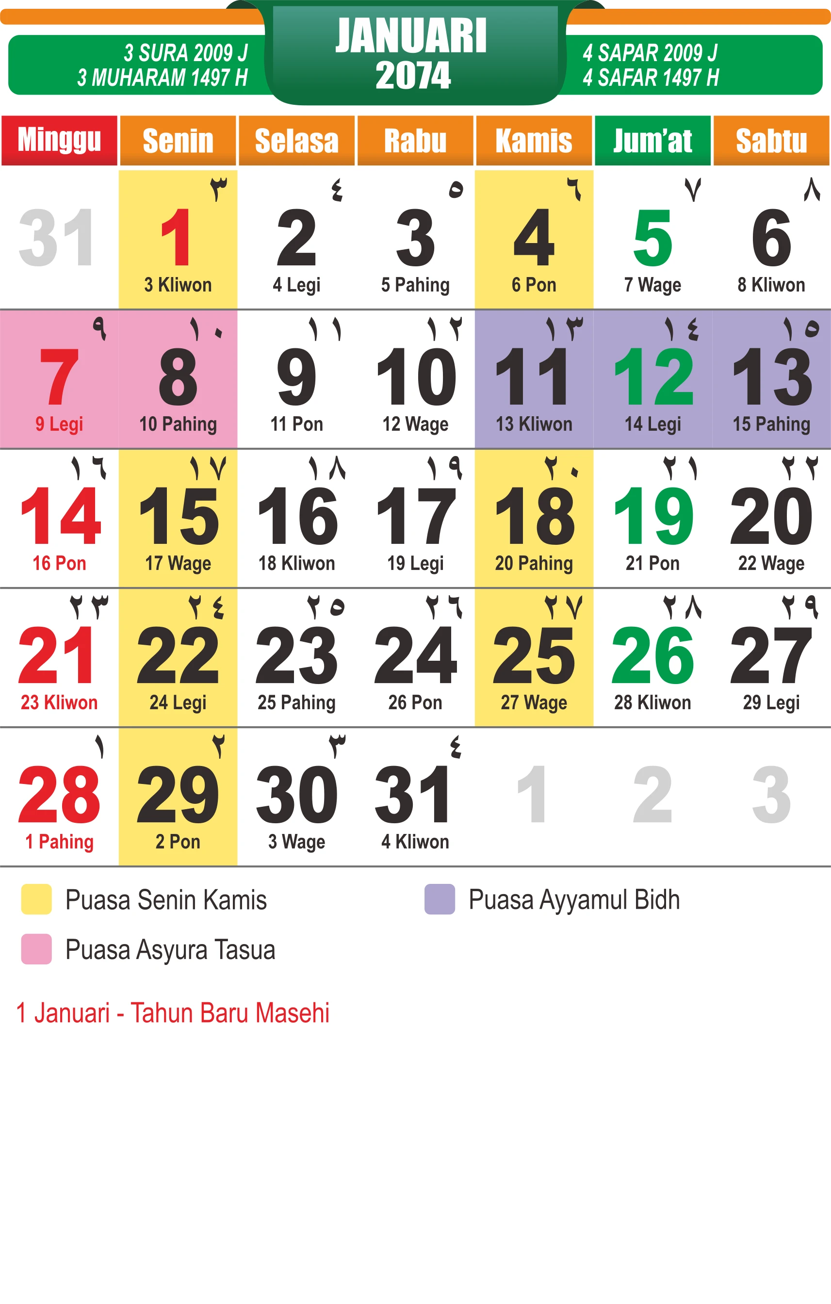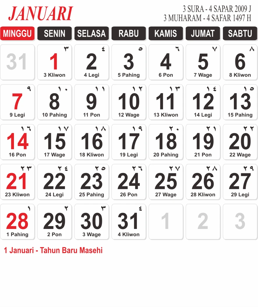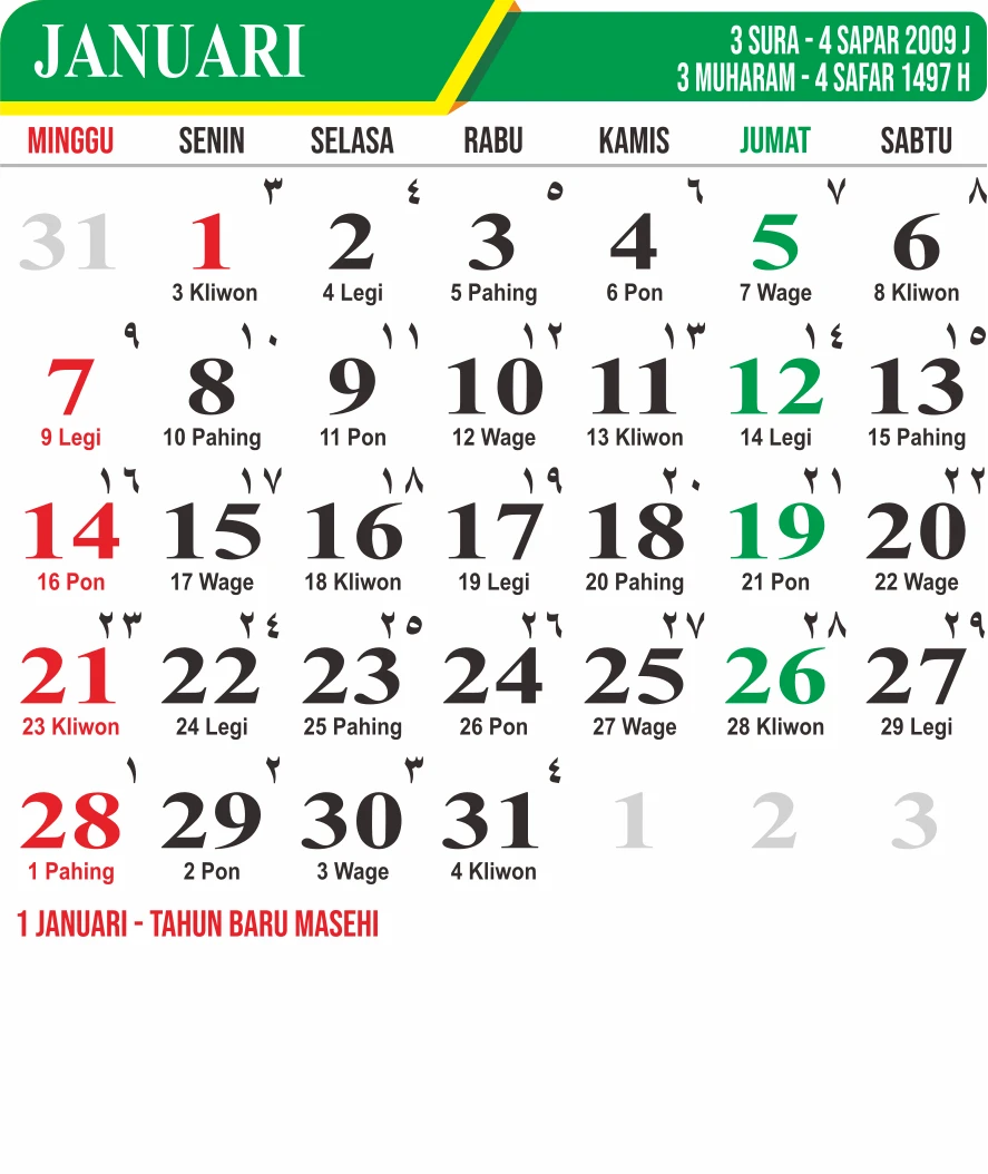 Template Kalender Jawa + Hijriah Vector