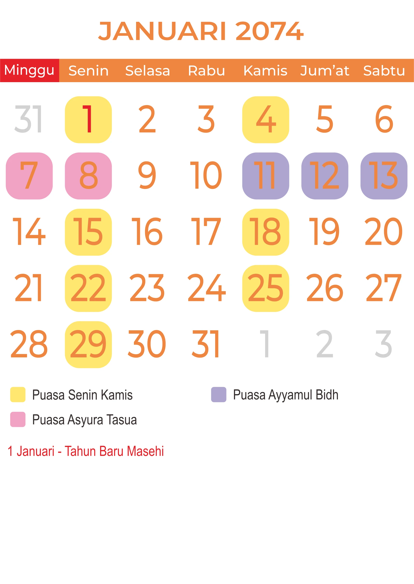 Template Kalender Masehi Vector