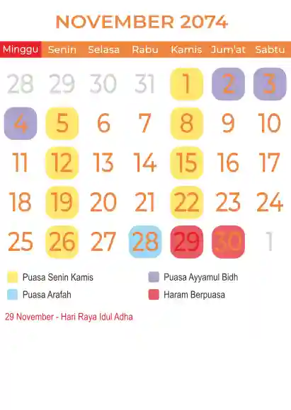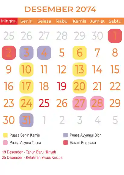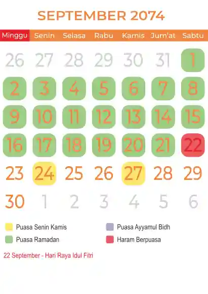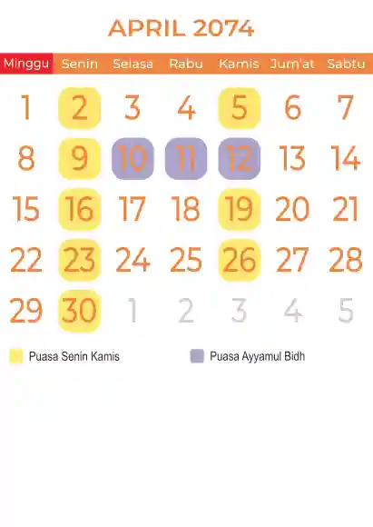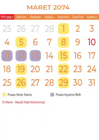 Template kalender puasa 2074, Versi yang lebih simple, cocok sekali buat anda yang ingin cetak kalender yang bermanfat buat umat.