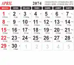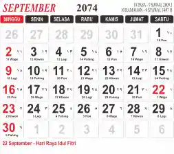 List hari libur tahun 2074 pada Tema 3 (Wide)