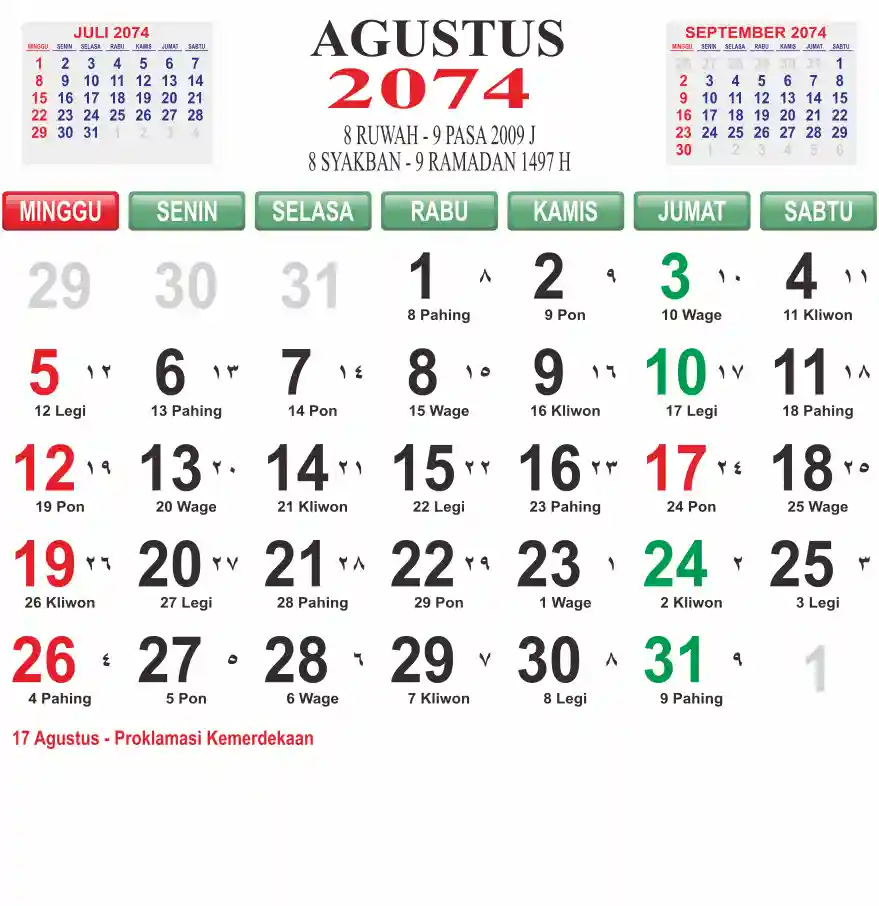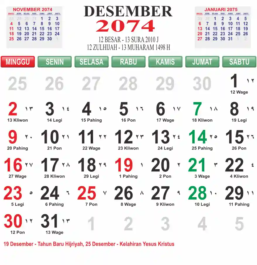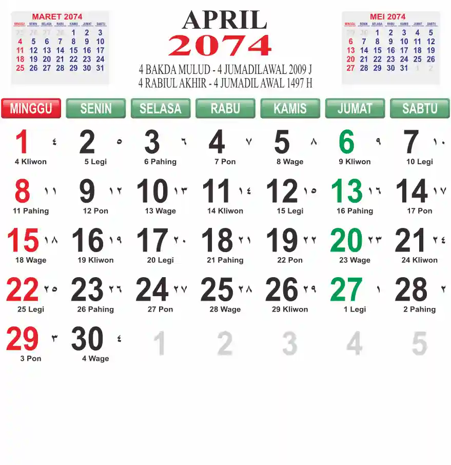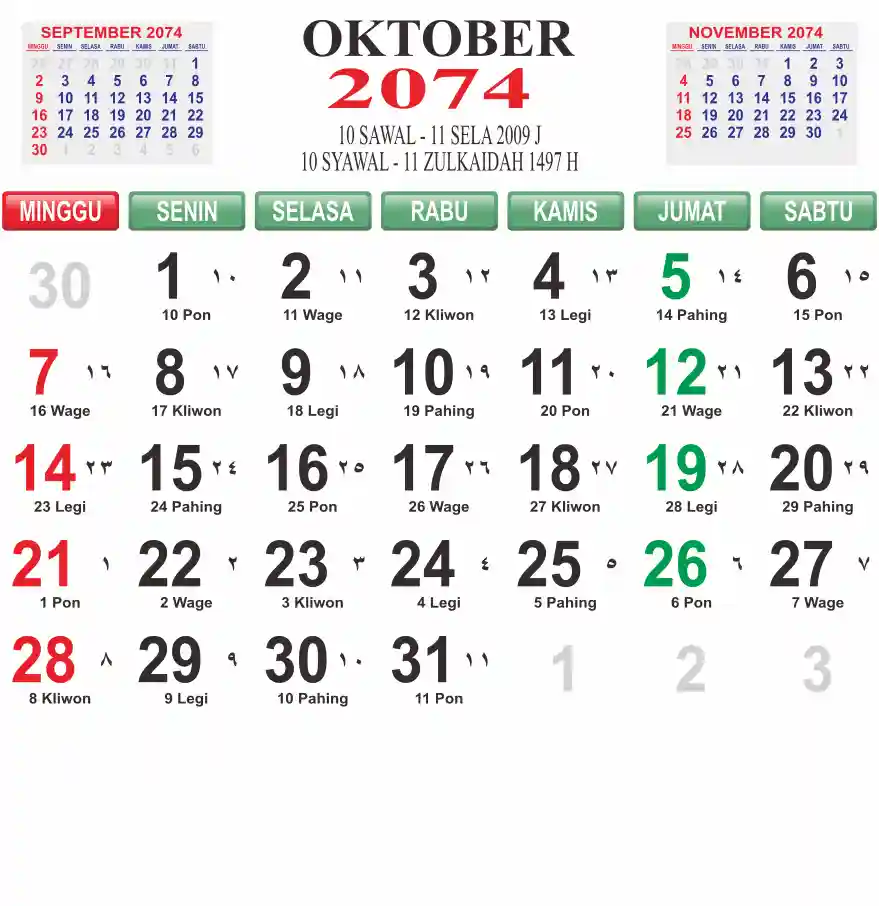 Template kalender 2074 lembaran besar jumbo yang mudah di baca dari jarak jauh. Kalender ini biasanya di cetak 1 lembar per bulan.