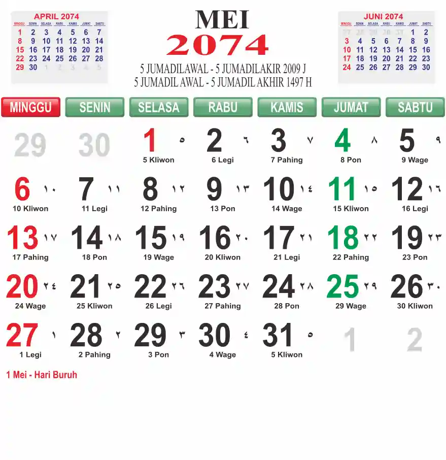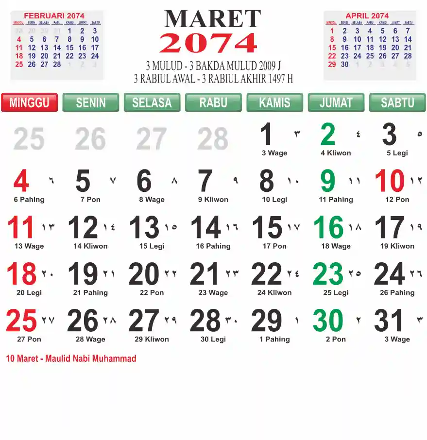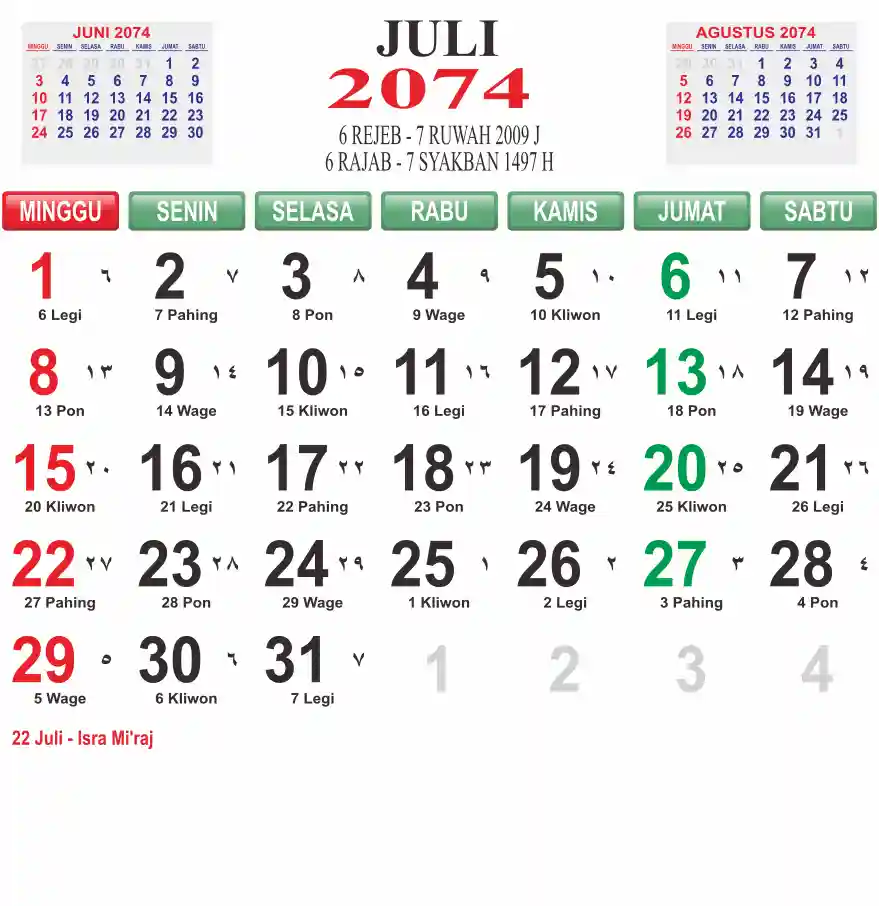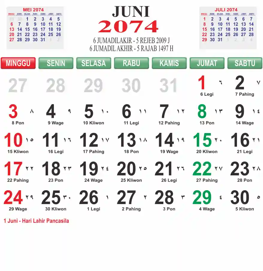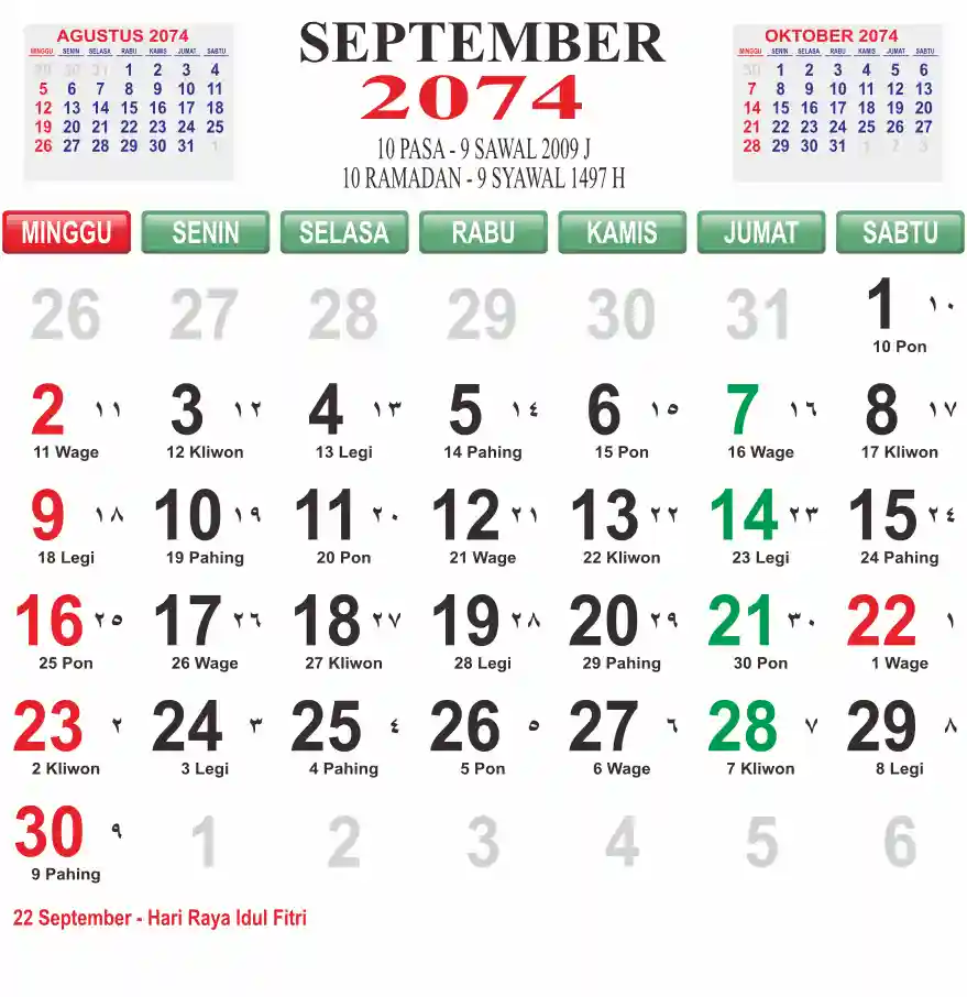 Template kalender 2074 lembaran besar jumbo yang mudah di baca dari jarak jauh. Kalender ini biasanya di cetak 1 lembar per bulan.