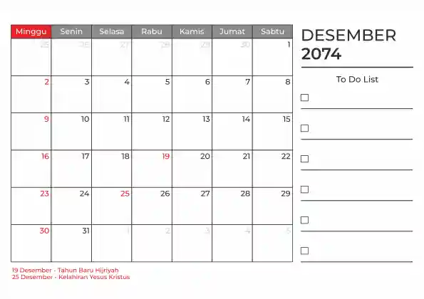 Template kalender 2074 duduk planner. Ada space kosong yang bisa di isi untuk menulis catatan dan ada space untuk menulis to do list.