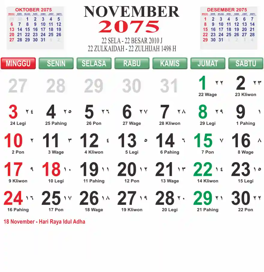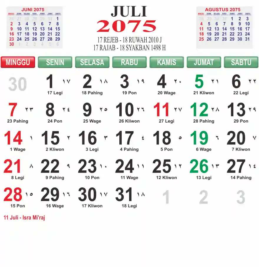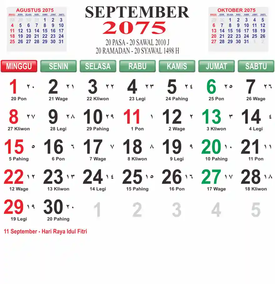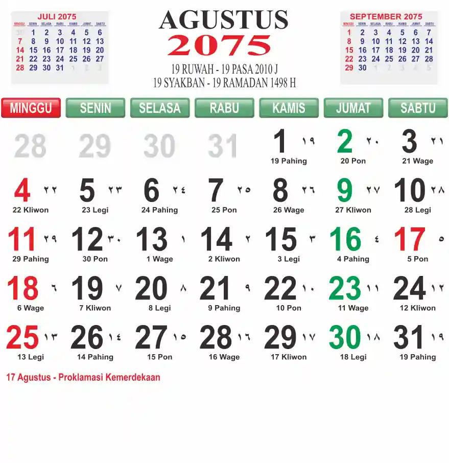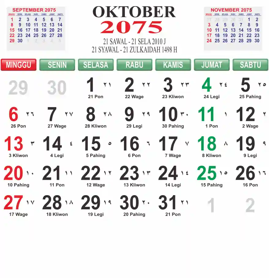 Template kalender 2075 lembaran besar jumbo yang mudah di baca dari jarak jauh. Kalender ini biasanya di cetak 1 lembar per bulan.